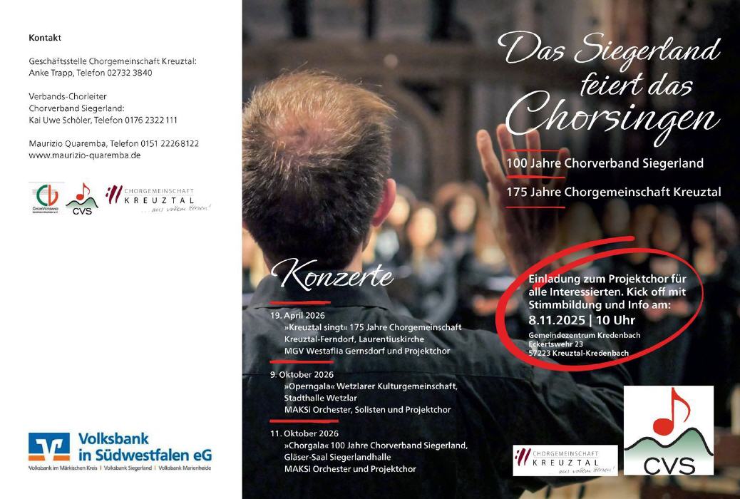 Sie sind hier: Startseite » Aktuell » 100 Jahre Chorverband Siegerland 100 Jahre Chorverband Siegerland