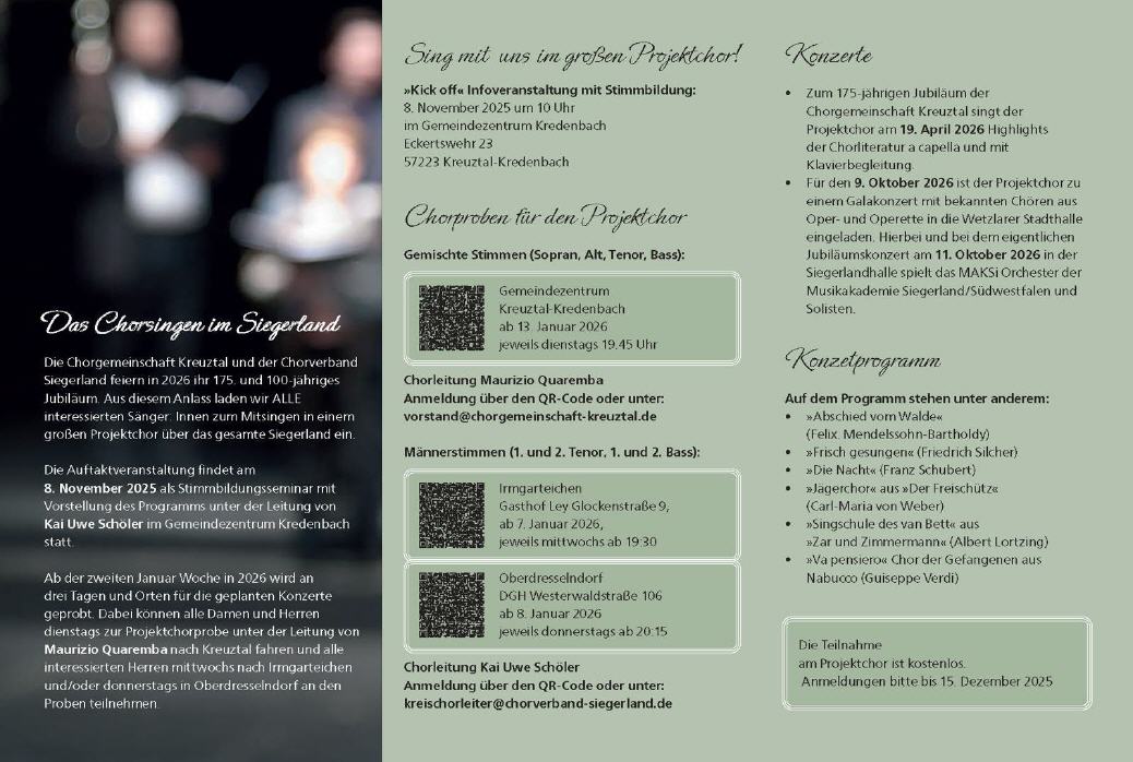 Sie sind hier: Startseite » Aktuell » 100 Jahre Chorverband Siegerland 100 Jahre Chorverband Siegerland